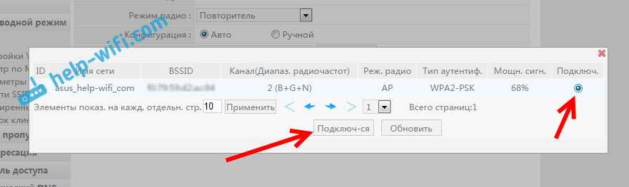 В настройках так же все просто. Достаточно выбрать режим работы «Повторитель», и задать необходимые параметры для подключения к беспроводной сети, которую хотим усилить.