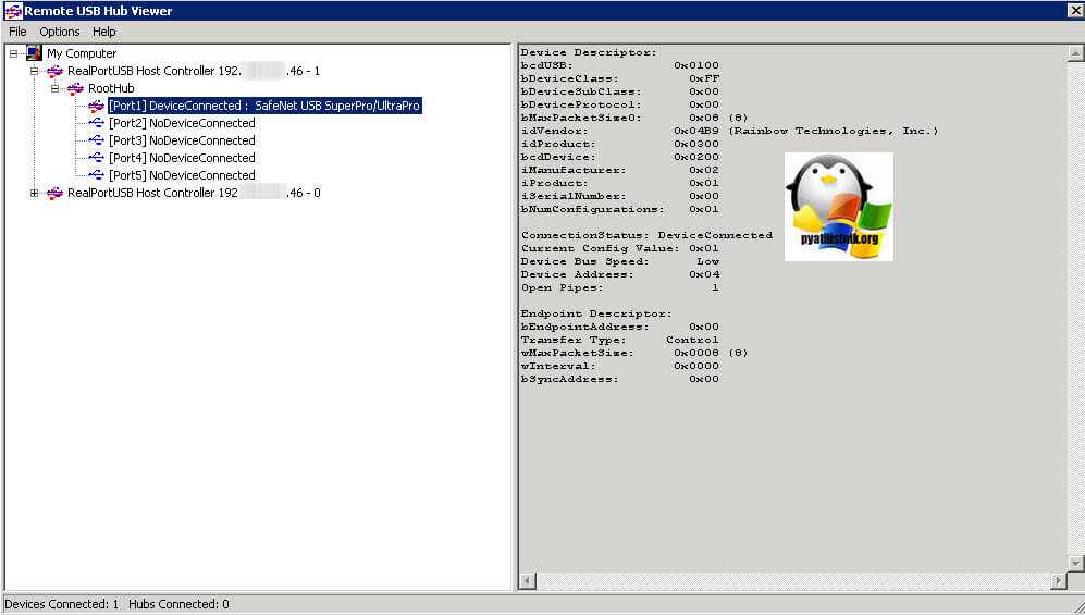 Утилита Remote USB Hub Viewer, так же определило правильно USB-токен.