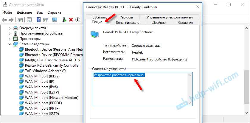 Возле адаптера так же может быть желтый восклицательный знак. Это значит что адаптер работает не правильно. Нажмите на него правой кнопкой мыши и выберите «Свойства». Там будет отображаться «Состояние устройства». Может быть сообщение об ошибке и код ошибки, по которому можно найти решение.