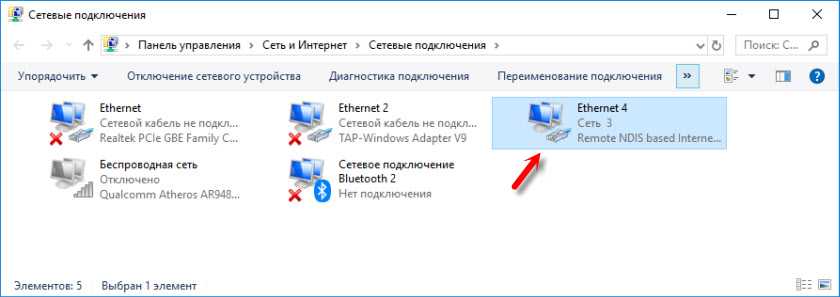 Отобразится в системе еще один сетевой адаптер. В нашем случае это Ethernet 4. На других компьютерах сетевой адаптер может быть другой, но это не является важным моментом.