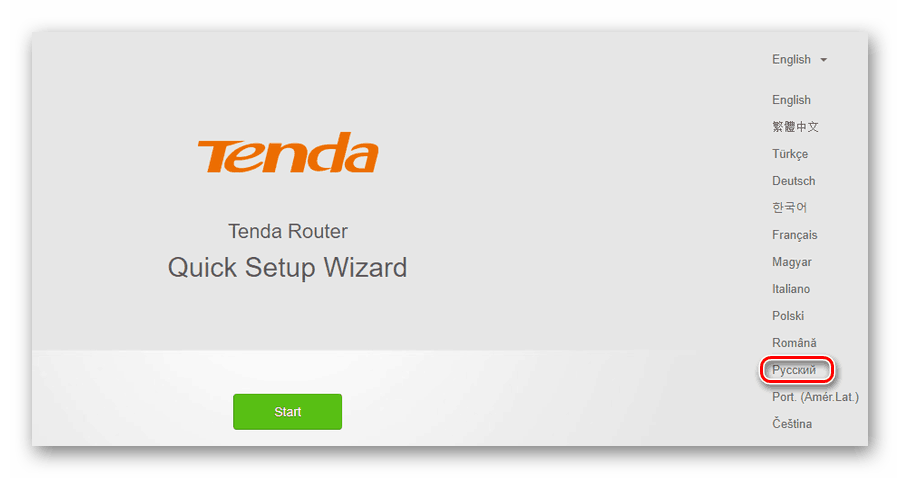 После того как юзер подключится к конфигурации роутера, автоматически открывается мастер быстрой настройки. Пользоваться им очень просто. Вначале рекомендуется проверить доступность русского языка: