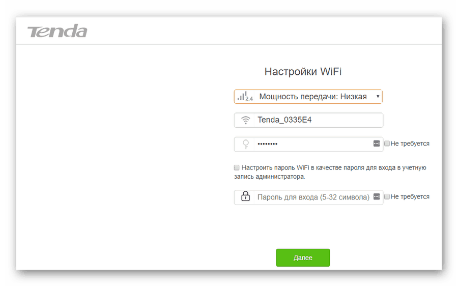 В последней строке устанавливается пароль администратора, с помощью которого в дальнейшем можно будет подключаться к конфигурации роутера. Там также имеется пункт, предлагающий установить для Wi-Fi и для администратора единый пароль, и отметка «Не требуется», позволяющая оставить доступ к веб-интерфейсу свободным. Целесообразность таких настроек, как и в предыдущем случае, весьма сомнительна и юзер должен осознавать все возможные последствия, прежде чем воспользоваться ими.
