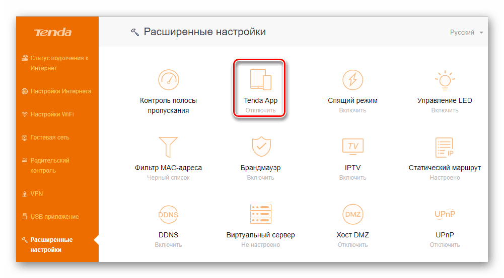 Описанными выше функциями перечень дополнительных возможностей, предоставляемых роутером Тенда, не ограничивается. Перейдя в раздел «Расширенные настройки», можно осуществить еще целый ряд интересных настроек. Они предельно просты и не требуют дополнительных пояснений. Более подробно можно остановиться разве что на функции Tenda App, которая является своеобразной фишкой компании.