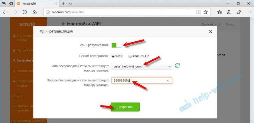 Настройка режима ретранслятора Wi-Fi сети на роутере Tenda