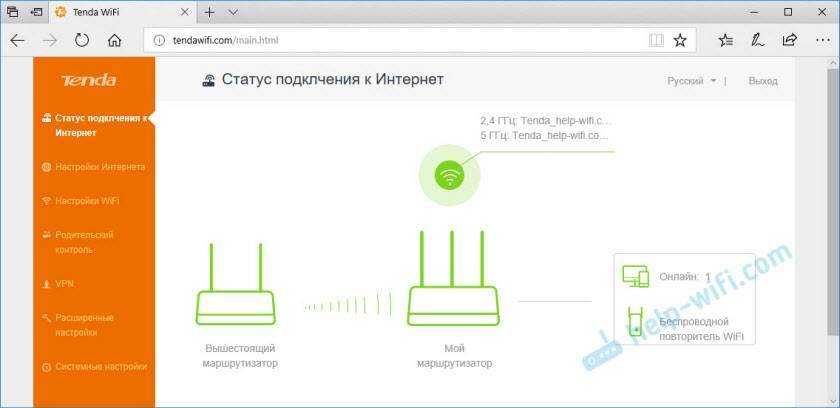 Активируем режим репитера — открываются две возможности передачи сигнала роутером Tenda