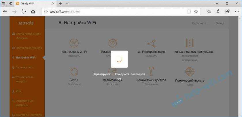 Роутер Tenda перезагрузится и начнет работу в качестве репитера. Это может занять несколько минут, так что будьте терпеливы.