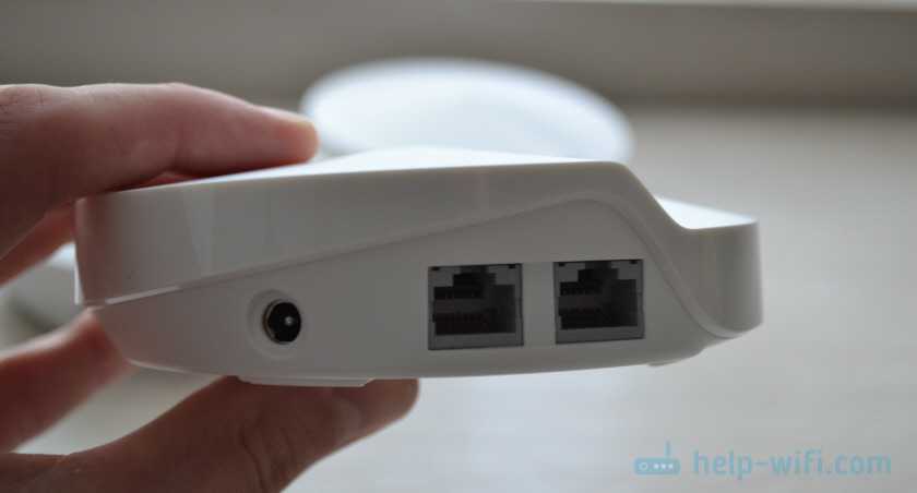 После этого подключаем оба модуля Deco к электророзетке. А также в любой из них в порт «1» вставляем кабель от интернет-провайдера или соединяем проводом из комплекта с основным wifi роутером, если вы хотите расширить уже существующую сеть.