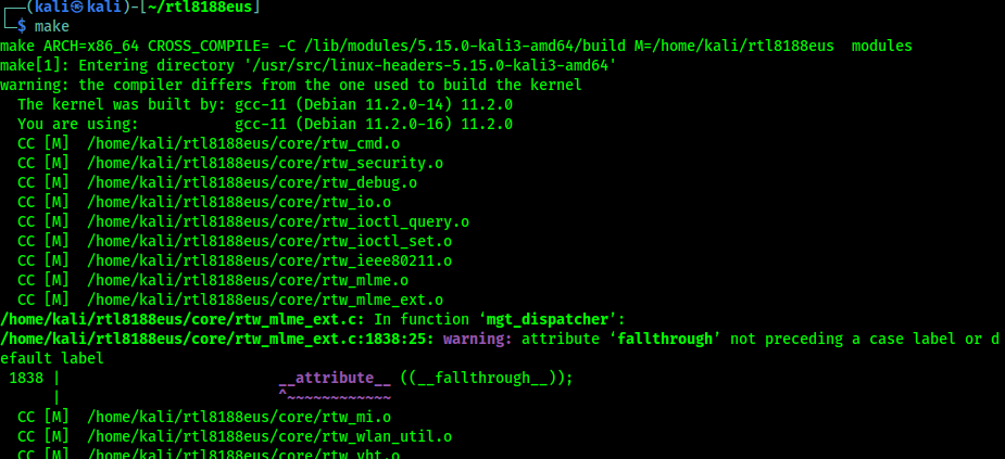 Процесс компиляции может занять пару минут в зависимости от производительности системы. Затем запустим команду для установки скомпилированного драйвера:
