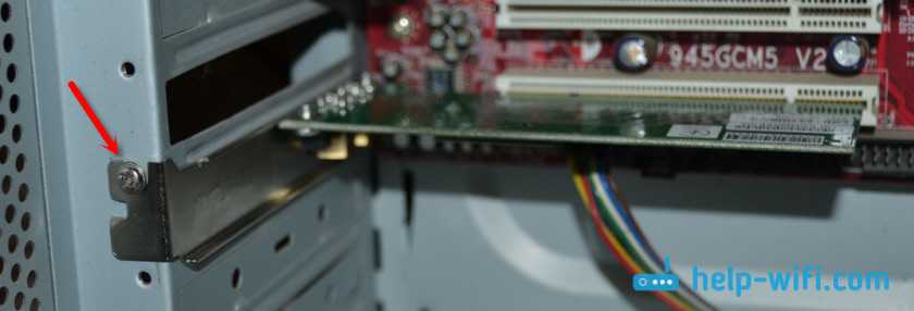 Дальше нужно аккуратно о вставить адаптер TP-Link TL-WN851ND в PCI слот. Если на задней стенке, возле слота стоит металлическая планка (в корпусе системного блока)