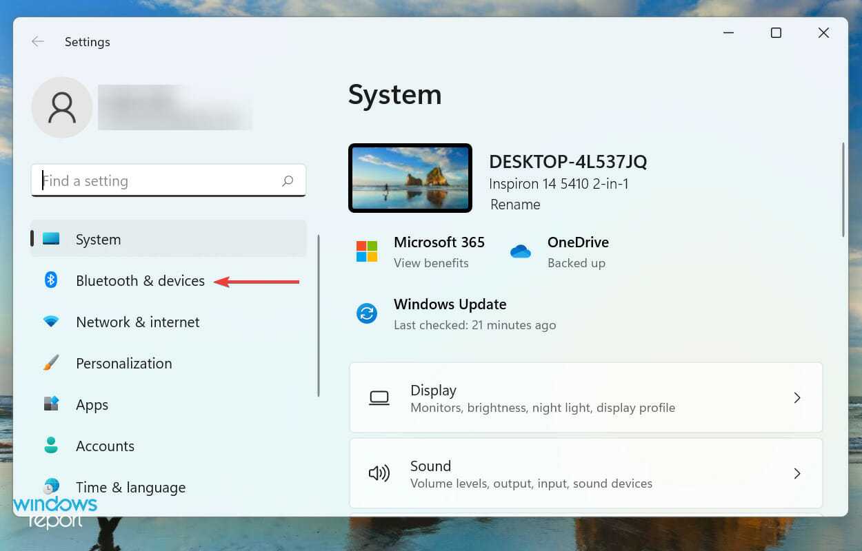Нажмите Windows+ I, чтобы запустить приложение « Настройки », и выберите вкладку « Bluetooth и устройства » в списке параметров на панели навигации слева.