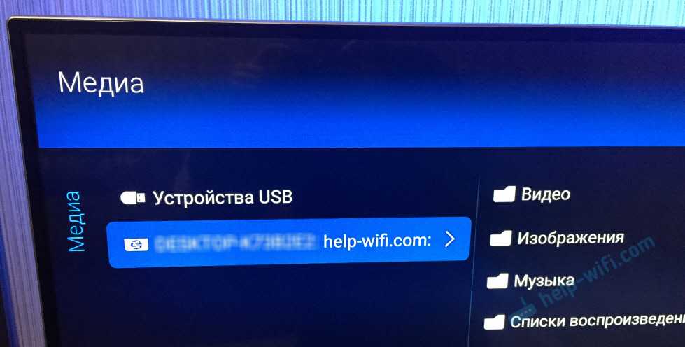 Как можно увидеть на скриншоте выше, доступ сразу будет открыт к трем стандартным папкам: «Видео», «Изображения», «Музыка». Все файлы, которые находятся в этих папках, вы сможете просматривать на телевизоре.