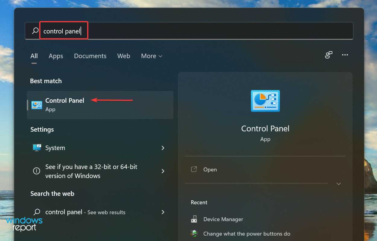 Нажмите Windows+ S, чтобы открыть меню поиска , введите « Панель управления » в текстовое поле вверху и щелкните соответствующий результат поиска.