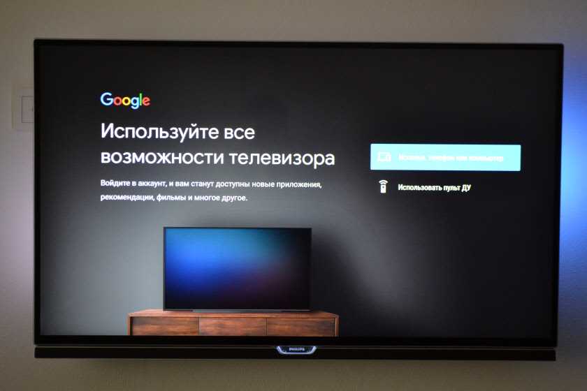 Если вы выберите «Использовать телефон или компьютер», то на одном из ваших устройств в браузере нужно перейти по адресу androidtv.com/setup и ввести код, который будет отображаться на экране телевизора.