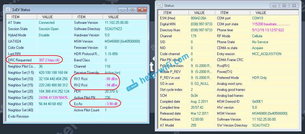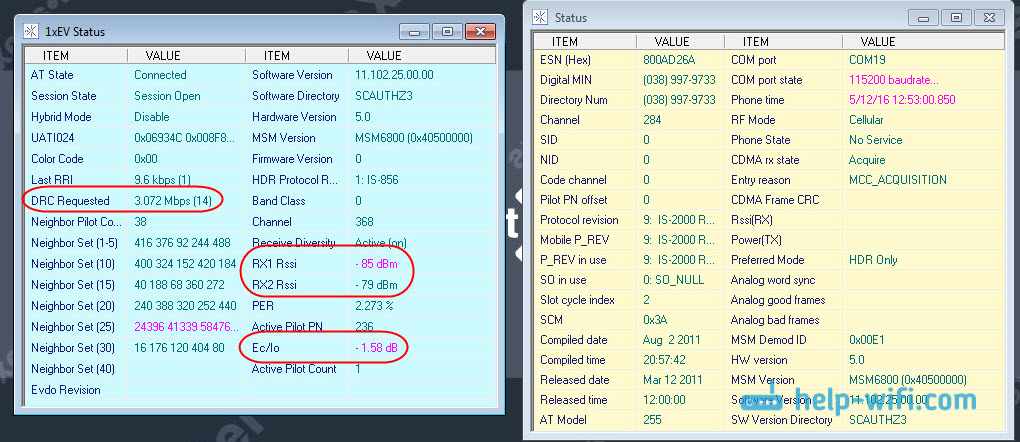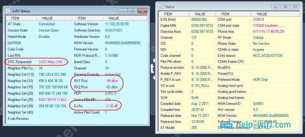 Напомню: параметр DRC Requested должен быть как-можно выше, и стабильнее. В идеале — 3.072 Mbps. А параметры RX1, RX2 и Ec/Io должны быть как можно ниже. Чем они ниже, тем лучше. Цифры, которые вы видите у меня, это примерно достаточный уровень сети.