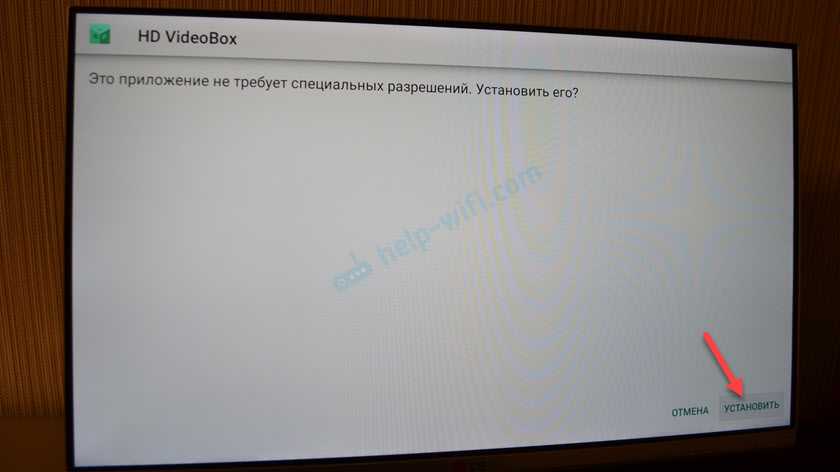 Возвращаемся назад (нажав кнопку на пульте ДУ) и снова запускаем установку этого файла. Когда появится запрос на установку нажмите на кнопку «Установить».