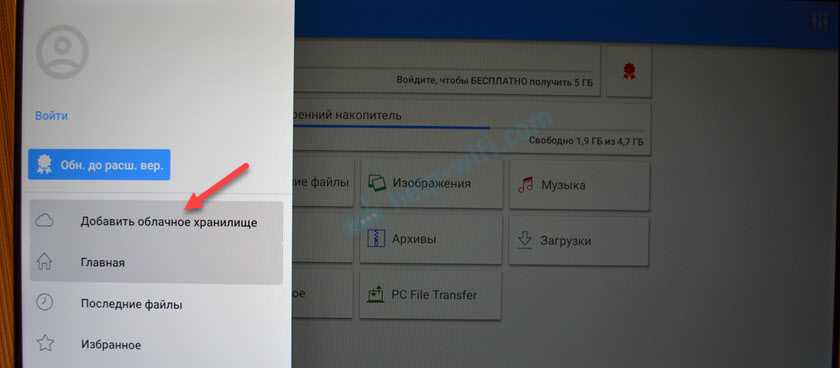 В File Commander открываем меню (три полоски в левом верхнем углу) и выбираем «Добавить облачное хранилище».