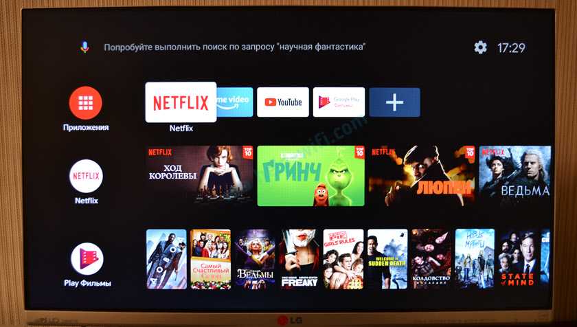 Все ваши приложения отображаются в нижней части экрана в виде минималистичной отдельной строки. Вы можете прокручивать список, используя левую и правую кнопки на пульте дистанционного управления Android TV. Фоновое изображение настраивается.
