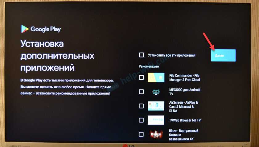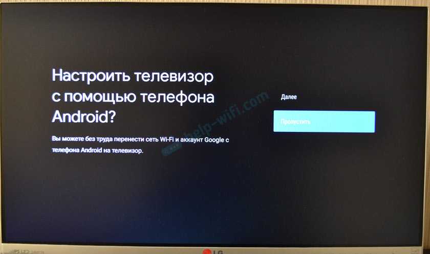 На данном шаге возможны два варианта развития событий. Если хотите продолжить настройку Mi TV Stick с помощью своего смартфона Android, то нажмите кнопку «Далее». Если нет — жмите «Пропустить», что мы и советуем сделать.