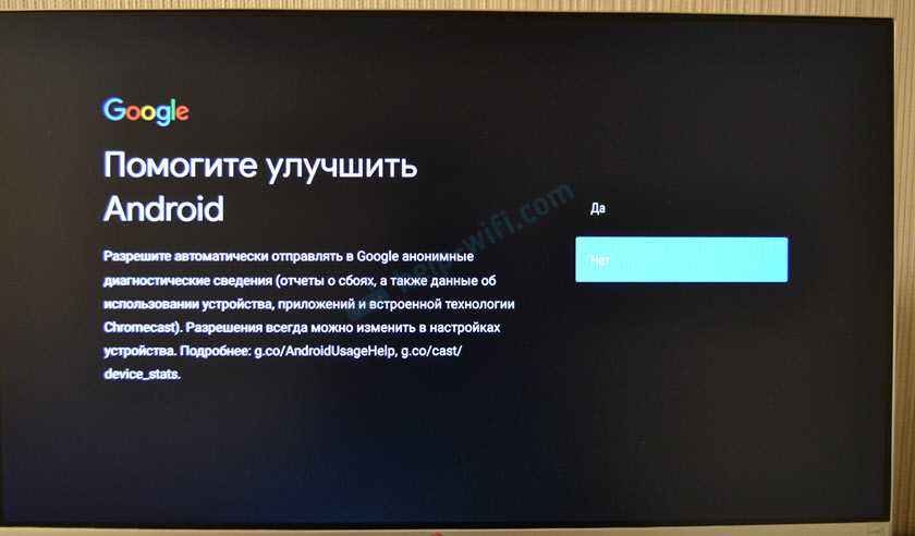 Разрешаем, или запрещаем приставке отправлять в Google диагностические сведения.