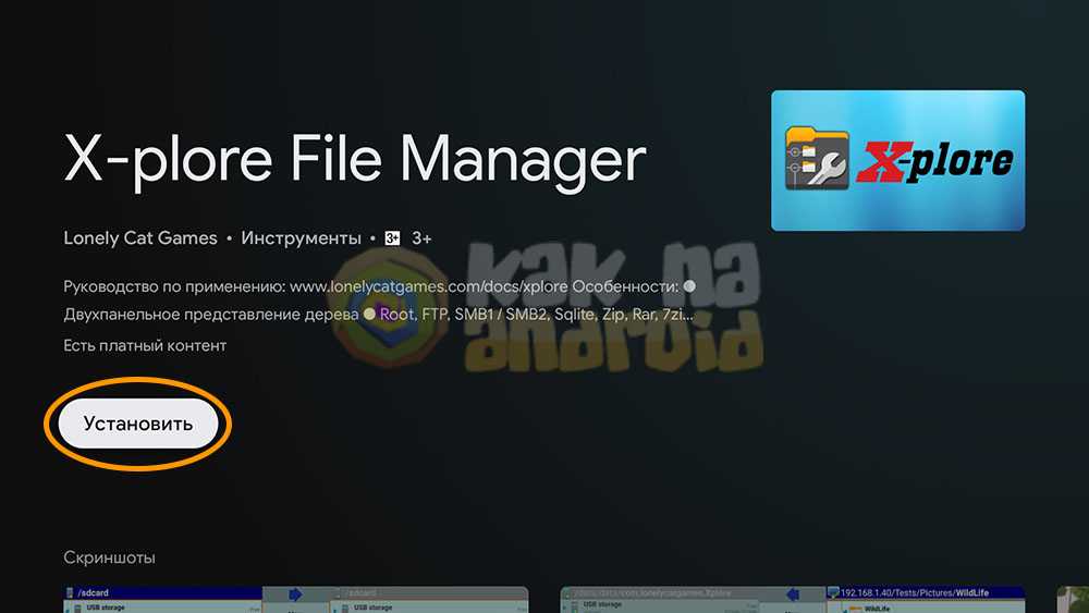 Первое, что делаем в данном случае – скачиваем APK файл на флешку с помощью компьютера и подключаем её к Mi Box S (на этом этапе в любом случае потребуется установить из Google Play какой-либо файловый менеджер, например X-plore, так как изначально он не установлен в системе).