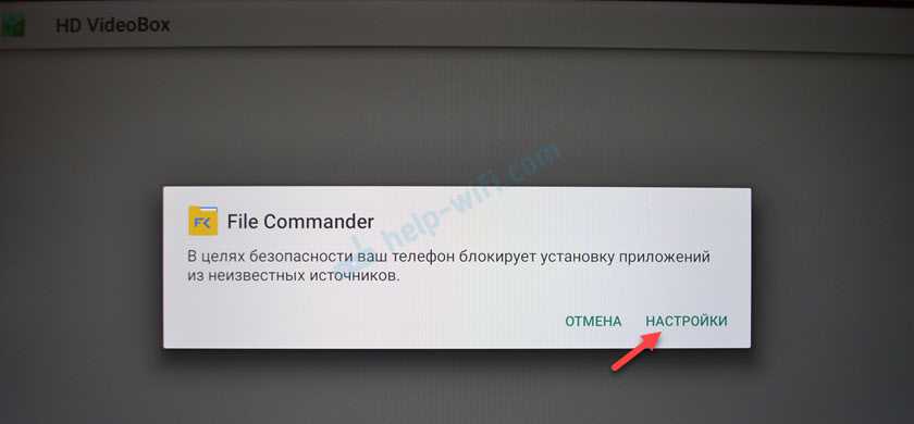 - Не забываем разрешить установку неизвестных приложений из нашего файлового менеджера. На этот раз это приложение HD VideoBox.