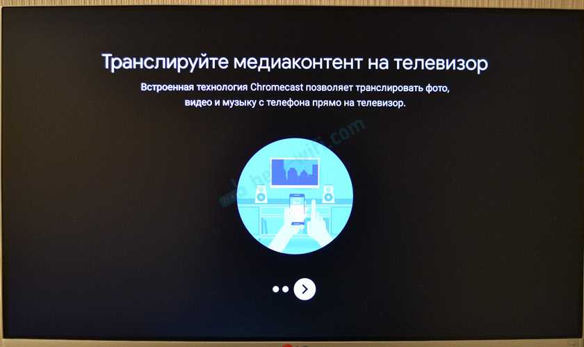 После выбора источник сигнала появится изображение с приставки. Сначала идет загрузка Android TV, а затем появляется главный экран. Но так как наша приставка скорее всего еще не настроена, то она попросит нас подключить пульта ДУ и начнется процесс первой настройки. Об этом дальше в статье.