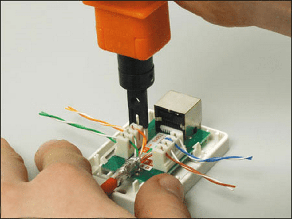 Вытащить кабель из стенной розетки немного проще, потому что схема кабеля напечатана прямо на контактной панели розетки. Главное — ничего не перепутать. При установке розеток рекомендуется использовать приспособление для заделки витой пары, например, соединительный нож для эскрактора. Некоторые современные розетки позволяют обойтись без них — после разводки проводов просто закройте крышку розетки, и она зафиксирует соединения.