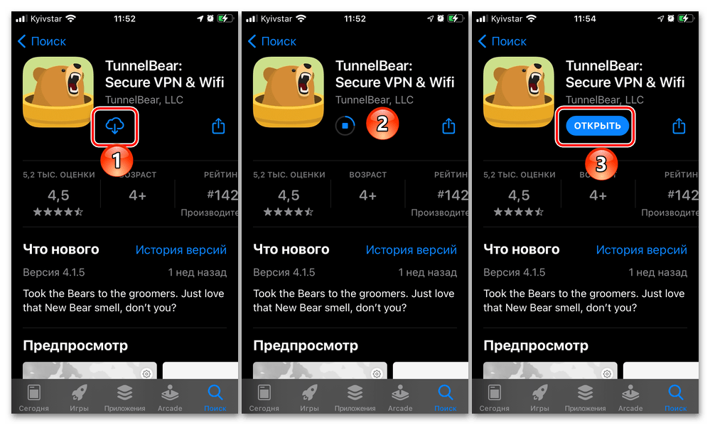 - Воспользовавшись представленной выше ссылкой, которая соответствует операционной системе вашего мобильного девайса (первая – iOS, вторая – Android), установите приложение-VPN, а затем откройте его.