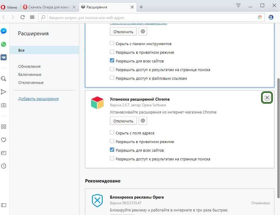 Удалить плагин можно и из браузера, не заходя в магазин расширений. Для этого: