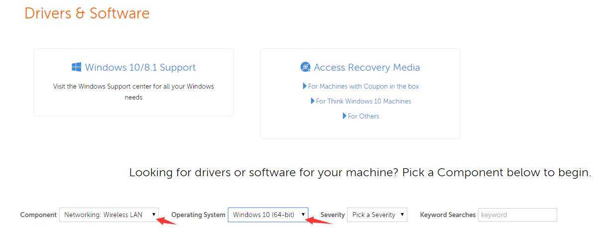 3. Select Component to Networking Wireless LAN and Operating System to the system version installed on your PC (For instance, Windows 10 64-bit). Then available audio drivers will be listed for you to download. If you see several download options, identify and download the latest one.