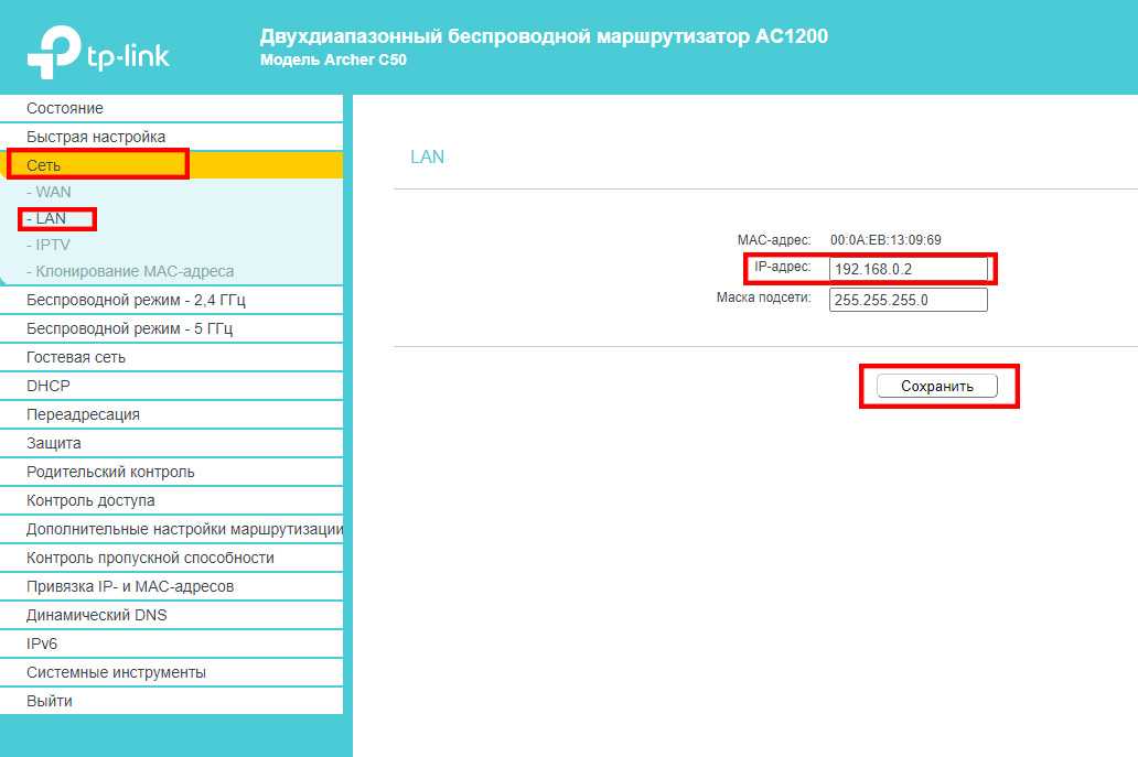 - В пункте «MAC-адрес» будет отображаться физический адрес LAN-порта.